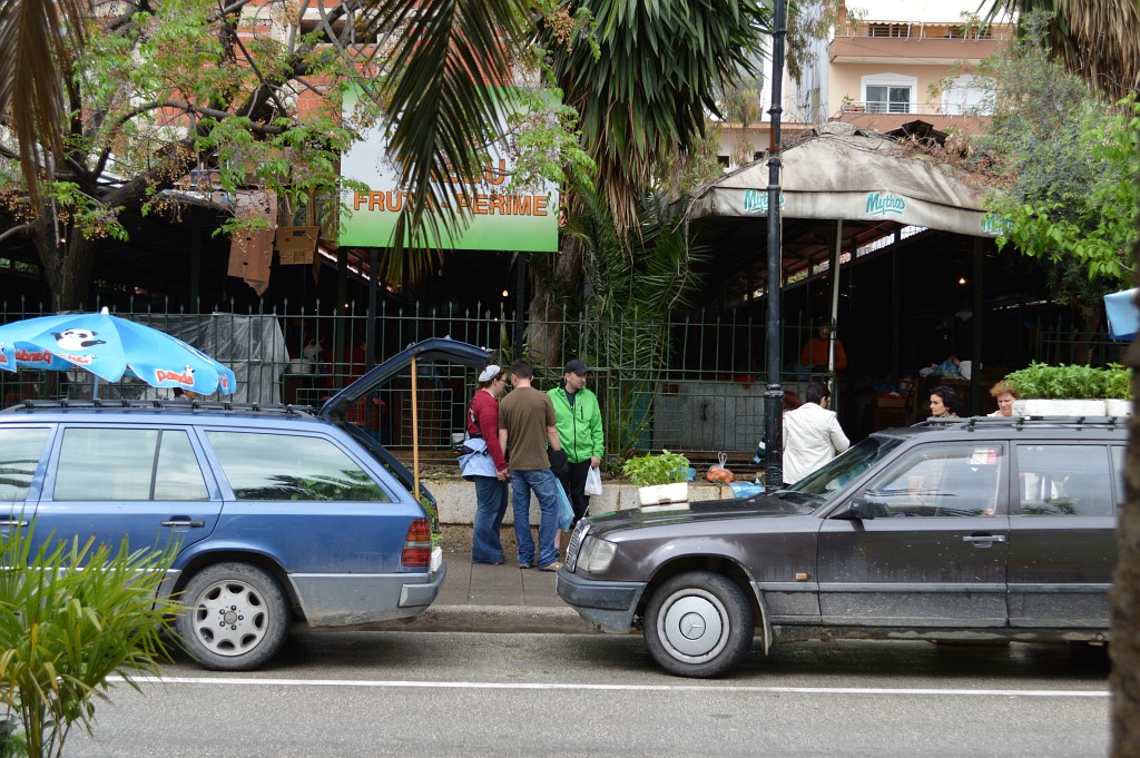 Die zwei Mitreisenden füllten noch Ihre Trinkwasserreserven aus einem Brunnen am Kloster, wir hatten gestern am blauen Auge noch etwas Wasser gebunkert. Vorbei am Friedhof ging es wieder hinaus durch das Schiebetor, war eigentlich ein schöner Übernachtungsplatz. Es ging über die bekannte Strecke zurück nach Sarande. Wir bummelten ein wenig über die sehr gute, jedoch auch noch im Winterschlaf befindliche, Promenade. In den hinteren Straßenzügen gab es Fleischer, Bäcker, Friseure und Zahnärzte. Auch ein wenig Markt war auf der Straße sowie in einer düsteren Markthalle. So etwas ist eigentlich immer Pflicht, hier wurden einem von alles Seiten Obst, Wein, Honig, Raki und noch zig andere Dinge angepriesen. In Summe gingen wir dann mit einer Flasche Raki und einer Flasche Wein hinaus, beides abgefüllt in alten 1,5 l Wasserflaschen. Raki brennen ist hier nämlich Volkssport und fast jeder Haushalt hat eine illegale Destille. Der Raki ist ein Schnaps aus Weintrauben oder Rosinen gebrannter Anisse’e. Aber der kleine Höhepunkt, nicht nur für unsere Konditormeisterin Claudia sondern auch für uns, war die Patisseri. Eine große Auswahl an kleinen Gebäckstücken lag vor uns in der Auslage. Mit vollen Tüten ging es zurück zu den Fahrzeugen, wir suchten uns einen Platz an der beginnenden Steilküste mit tosender Brandung. Leider ist das Wetter nicht so schön wie wir es verdient hätten. Eventuell fahren wir schon morgen wieder über die Grenze nach Griechenland um die Gegend unterhalb von Igoumenitsa zu erkunden. Aber dies muß noch abschließend geklärt werden. Natürlich würden wir auch gerne den Norden erkunden, aber aufgrund der Straßenverhältnisse in Albanien würde dies alles mehr Zeit in Anspruch nehmen als wir haben. Jetzt freuen wir uns auf einen gemeinsamen Abend in einem Restaurant mit Albanischer Küche, wir sind gespannt.